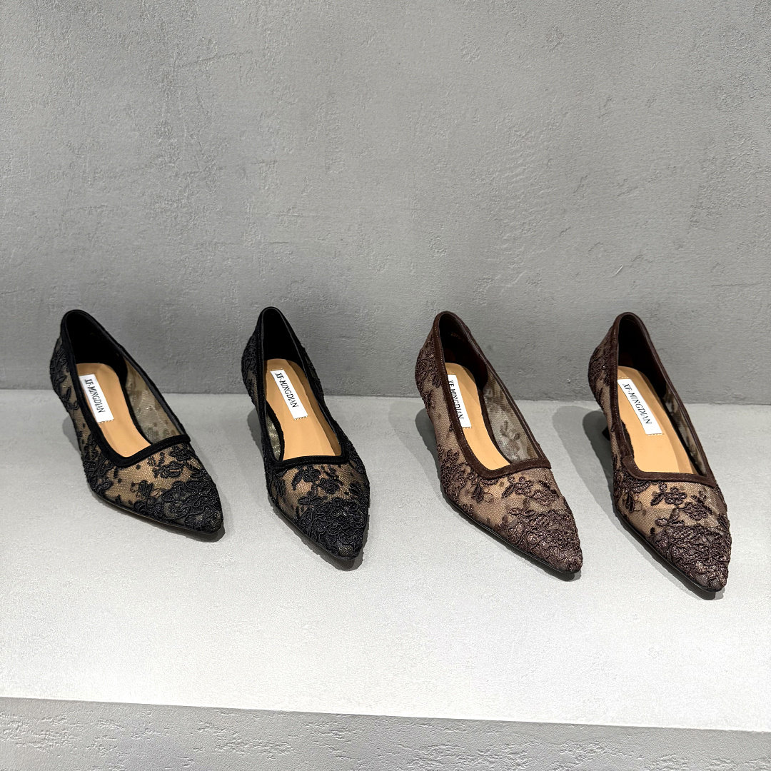 欧洲站欧货女鞋2026夏新款真皮包蕾丝网纱尖头浅口单鞋细跟高跟鞋