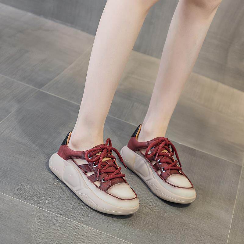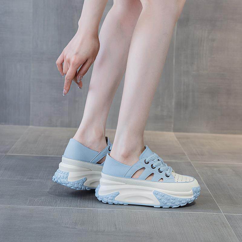 香港潮牌真皮包头运动凉鞋女显瘦夏新款厚底内增高镂空洞洞老爹鞋