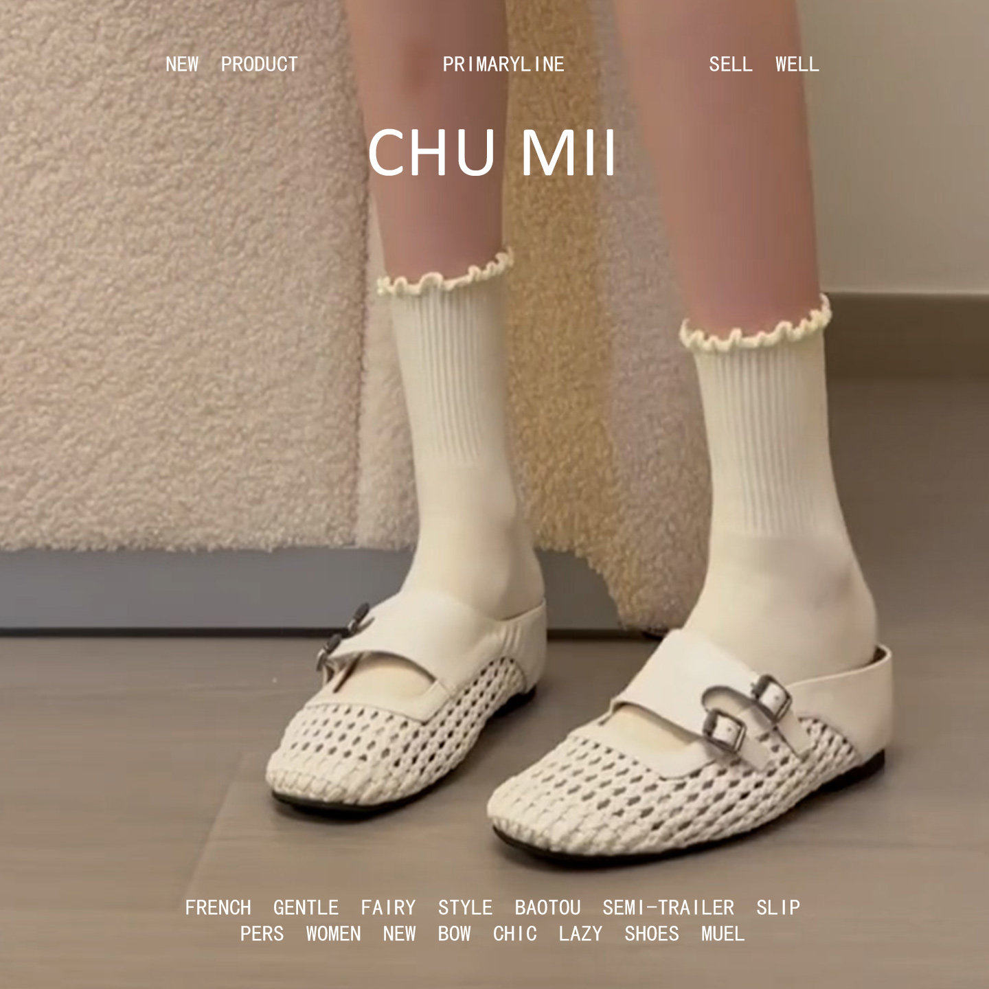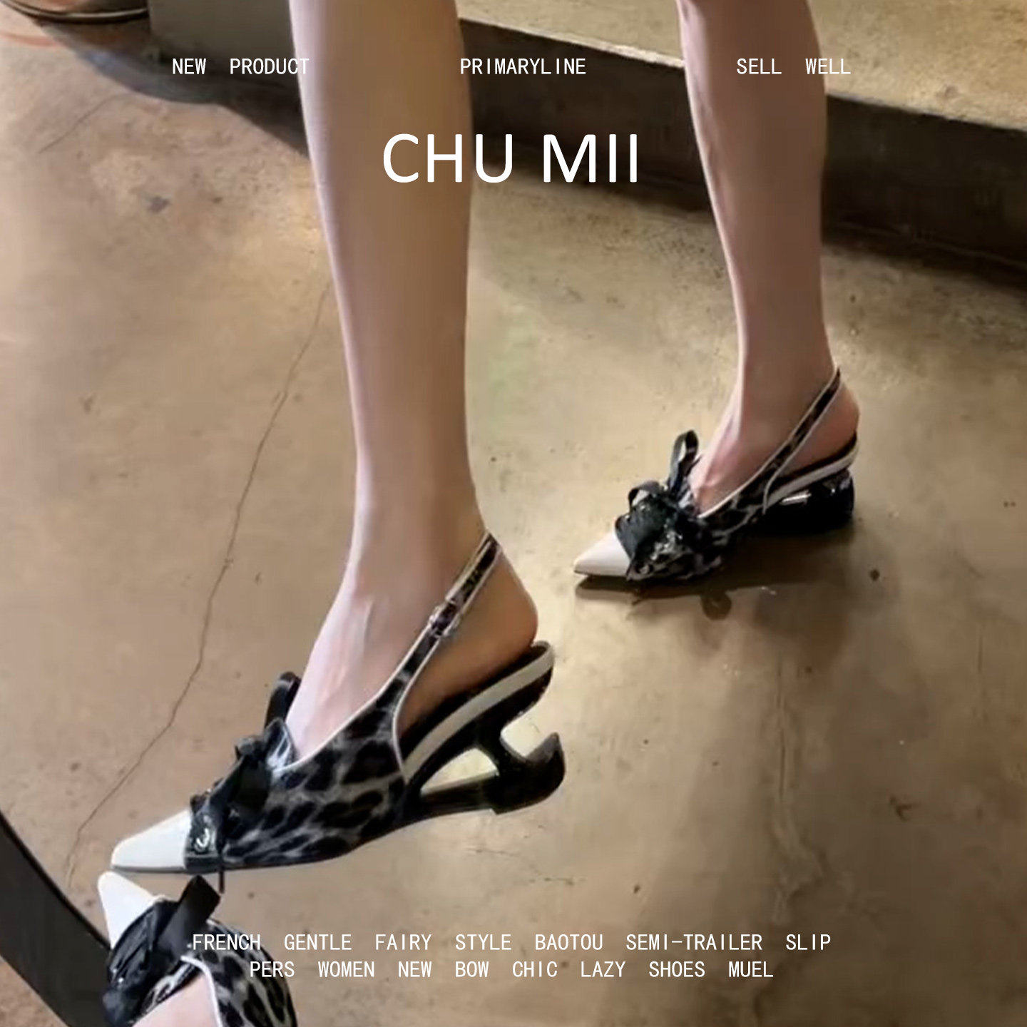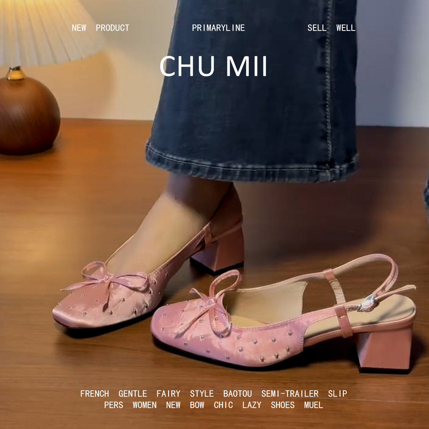 小香风金属花朵蝴蝶结包头凉鞋女24夏季真皮包跟粗跟高跟玛丽珍鞋
