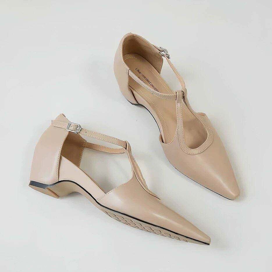 羊皮版!法式气质尖头高跟鞋女真皮包头凉鞋配裙子T字带细跟单鞋