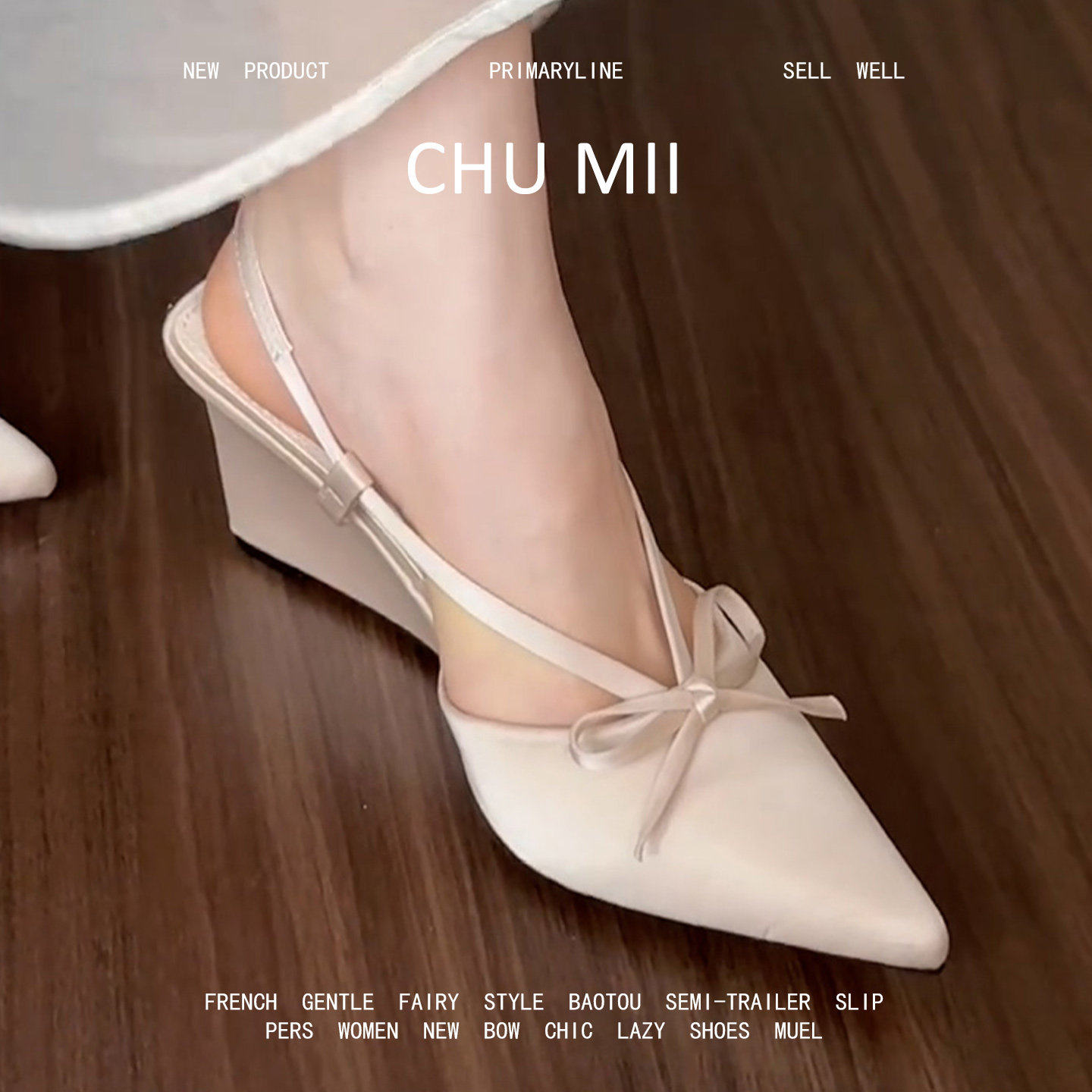 羊皮版!法式气质仙女风坡跟凉拖鞋女尖头高跟鞋温柔真皮包头凉鞋