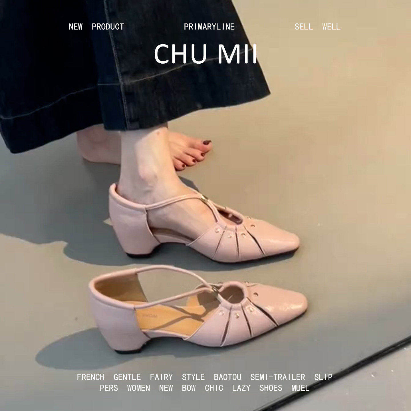 商场同款真皮包头凉鞋26夏新款女鞋舒适粗高跟鞋浅口后空女单鞋
