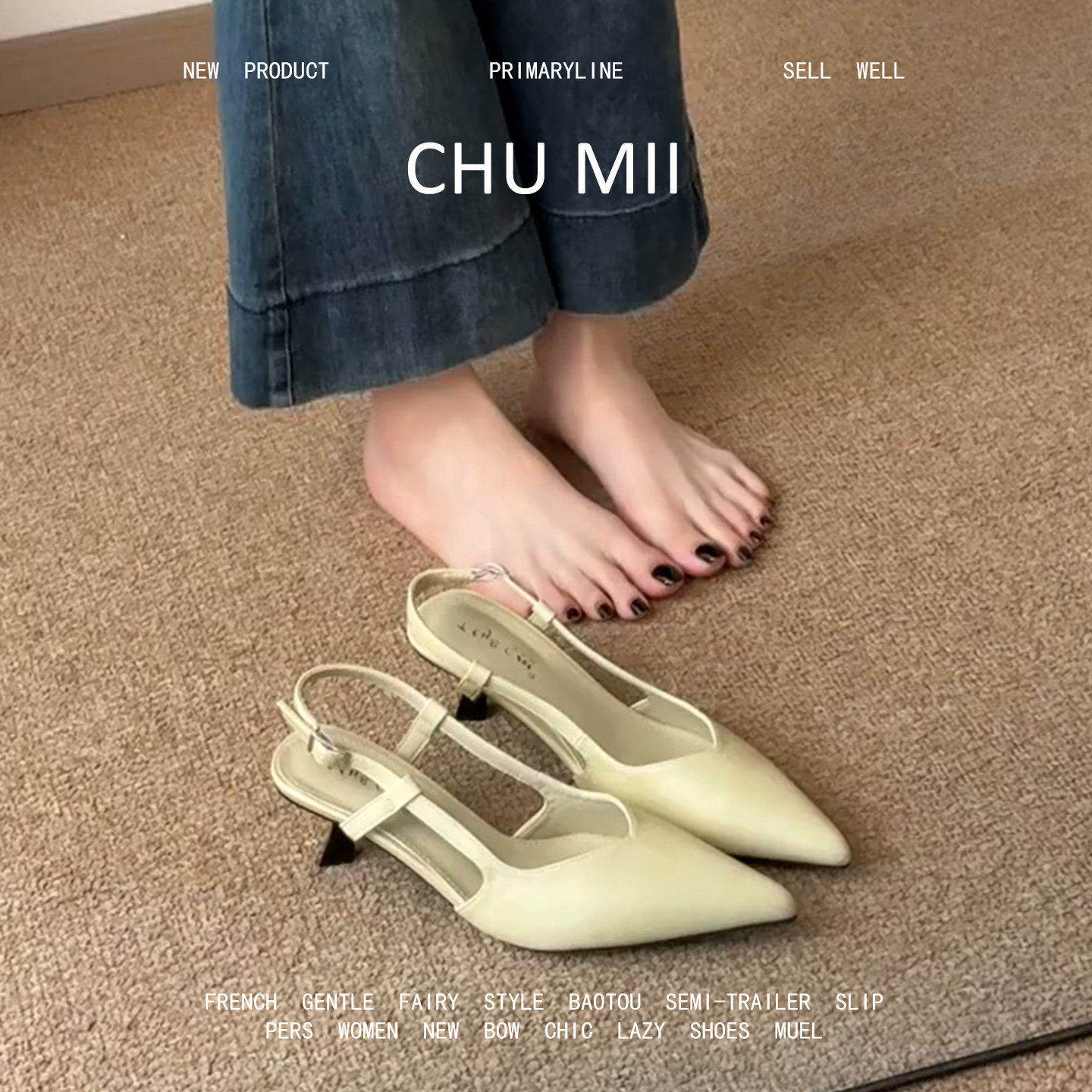 羊皮版!韩系御姐尖头高跟鞋女简约风真皮包头凉鞋一脚蹬细跟单鞋