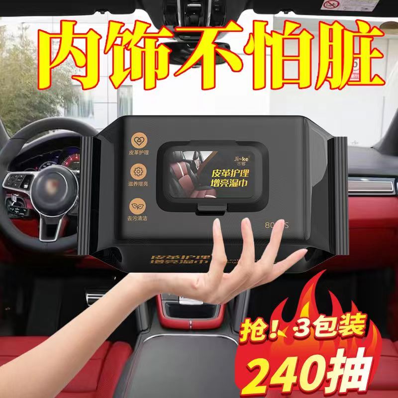 拍1发4汽车内饰清洁湿巾皮包护理湿巾座椅护理擦车神器强力去污