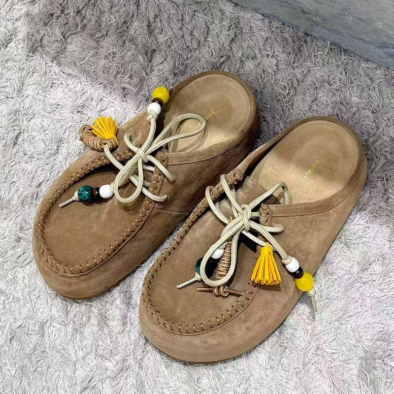 诗歌兰真皮包头半拖鞋女2025秋季新款时尚百搭圆头厚底穆勒鞋单鞋