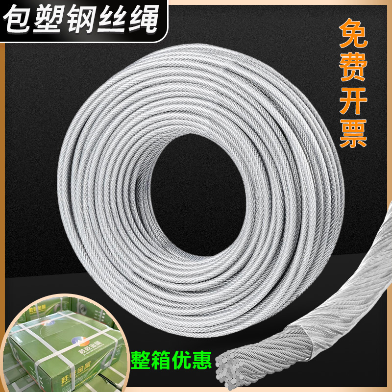 包塑钢丝绳镀锌钢丝绳包塑包胶钢丝绳子大棚葡萄架遮阳网带皮包胶