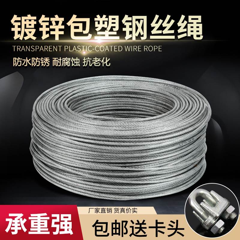 透明镀锌包塑钢丝绳子大棚葡萄架遮阳网带皮包胶软细2345681012mm