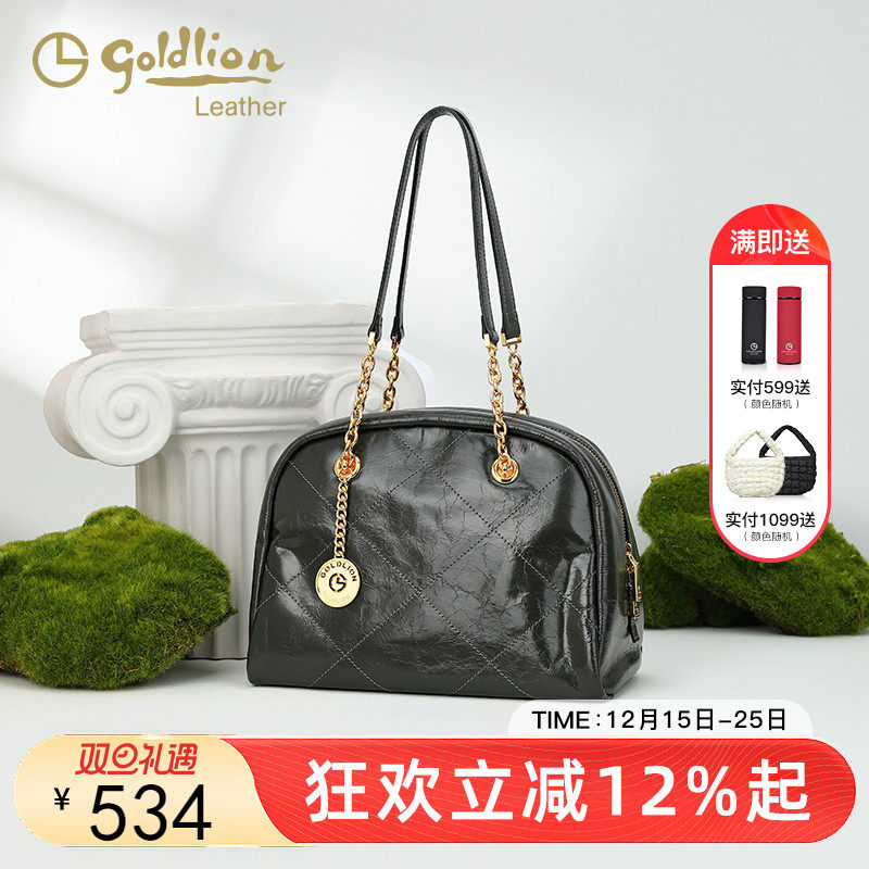 金利来油蜡皮真皮女包2025时尚新款大容量单肩手提包轻奢牛皮包包