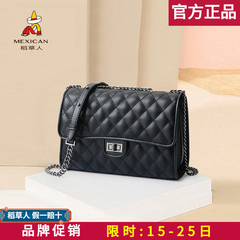 稻草人真皮包包时尚女包2025新款小香风菱格链条包斜挎单肩包小包