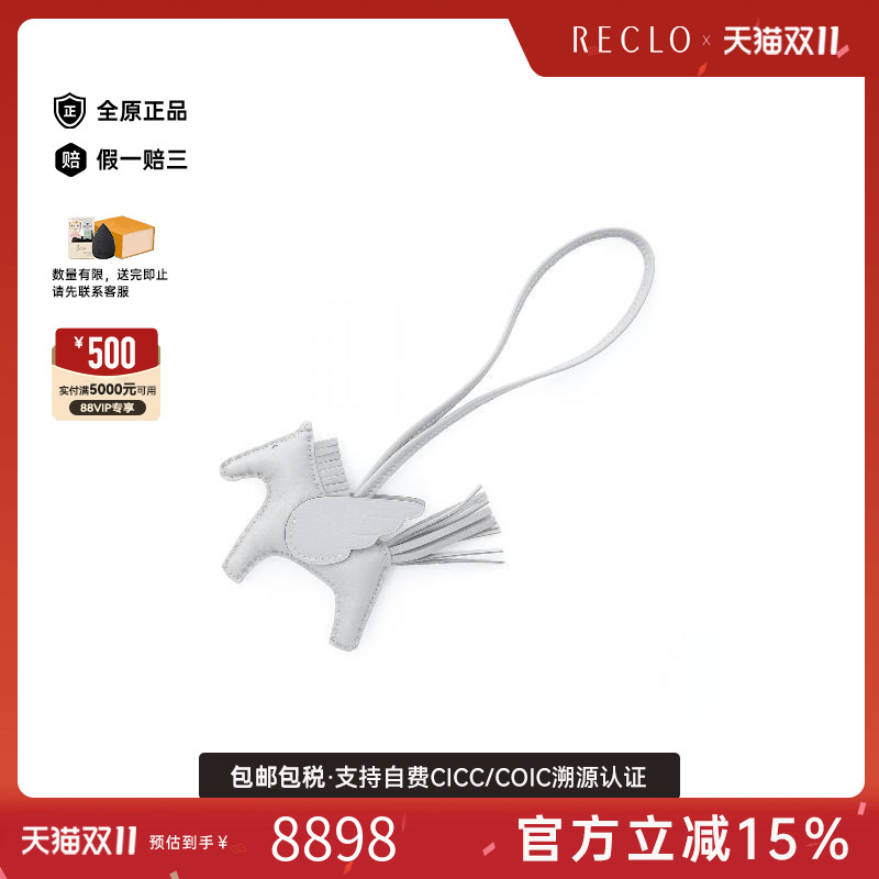 中古Hermes爱马仕女S级99新rodeo pegasus飞马挂饰羊皮包挂件灰色