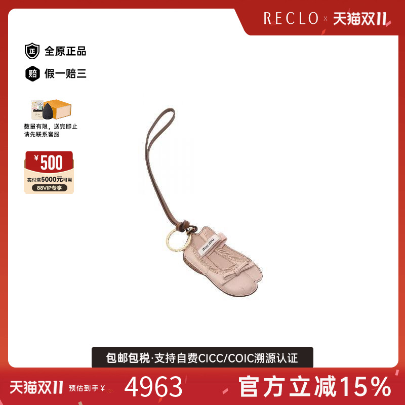 中古Miu Miu缪缪女S级99新key ring钥匙圈牛皮包挂件粉色