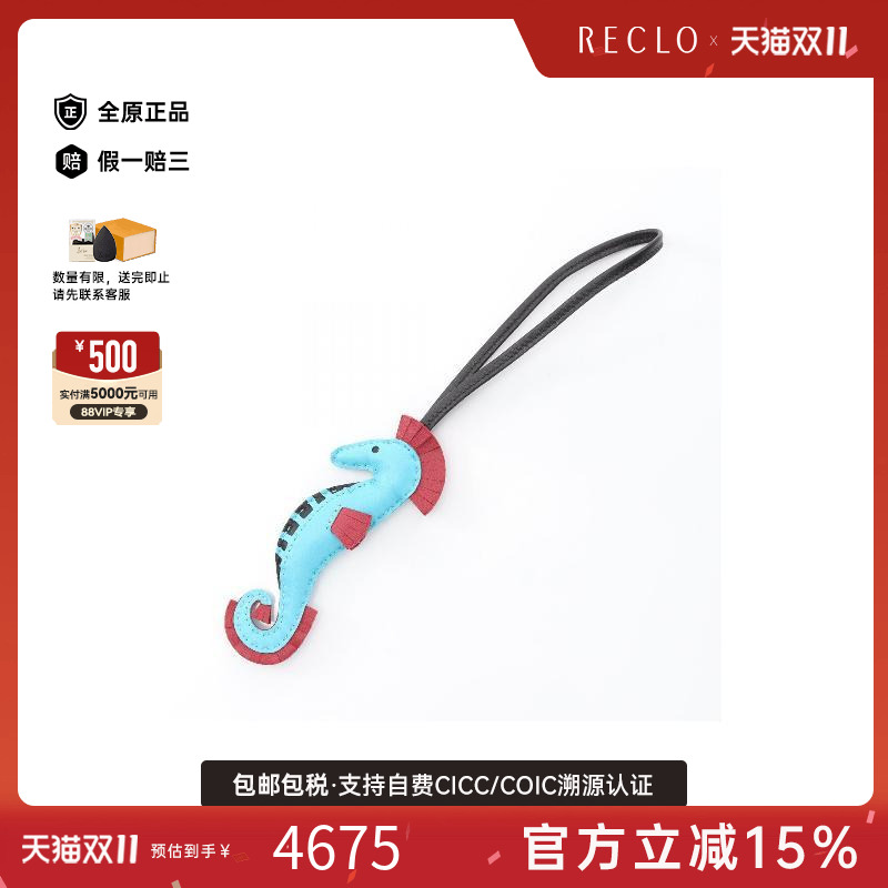 中古Hermes爱马仕女A级95新charm吊饰羊皮包挂件蓝色