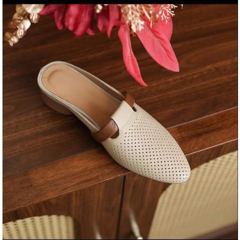 品牌断码真皮包头拖鞋女外穿2025年夏季新款时尚镂空低跟凉拖鞋