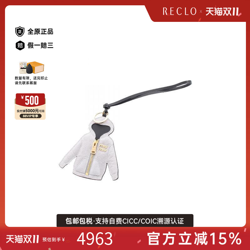 中古Miu Miu缪缪女S级99新key ring钥匙圈绒面革小牛皮包挂件灰色