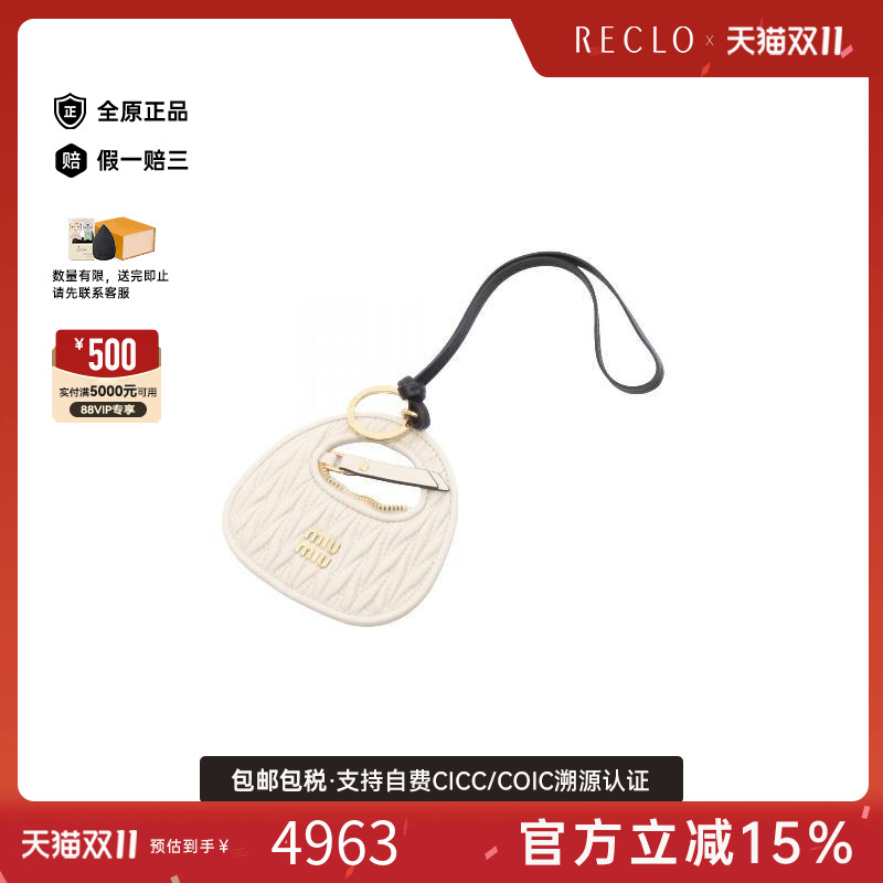 中古Miu Miu缪缪女S级99新key ring钥匙圈牛皮包挂件白色