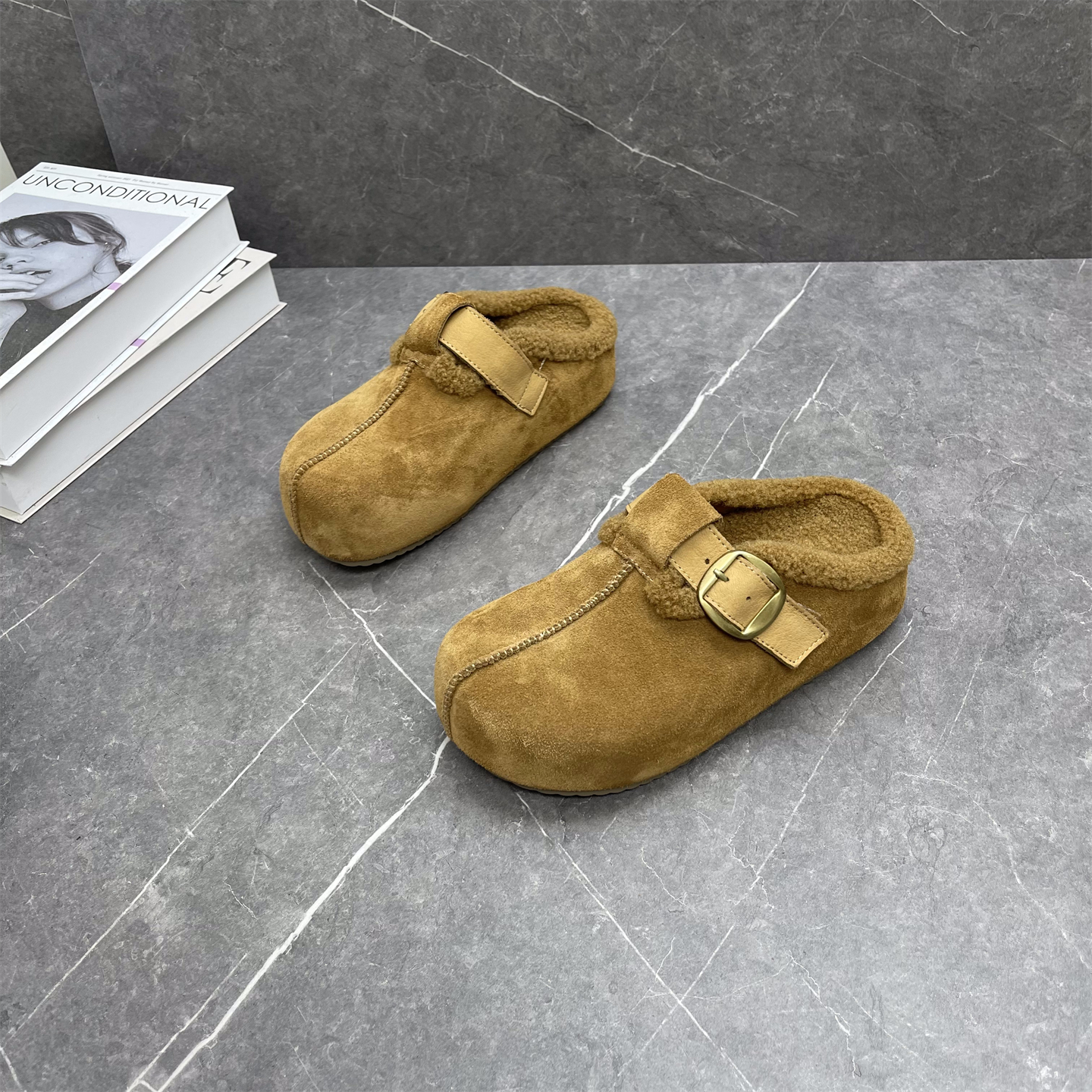 真皮包头勃肯鞋女2025年秋冬新款加绒百搭舒适保暖厚底外穿半拖鞋