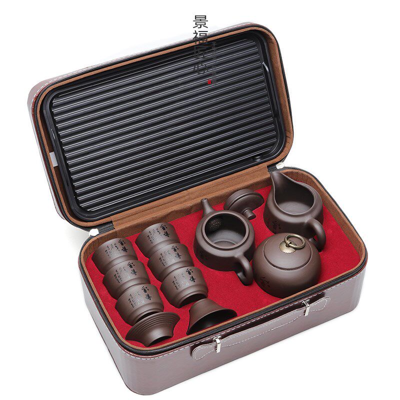 景福匠心整套中式紫砂壶功夫茶具套装礼盒皮包定制logo印刻字礼品