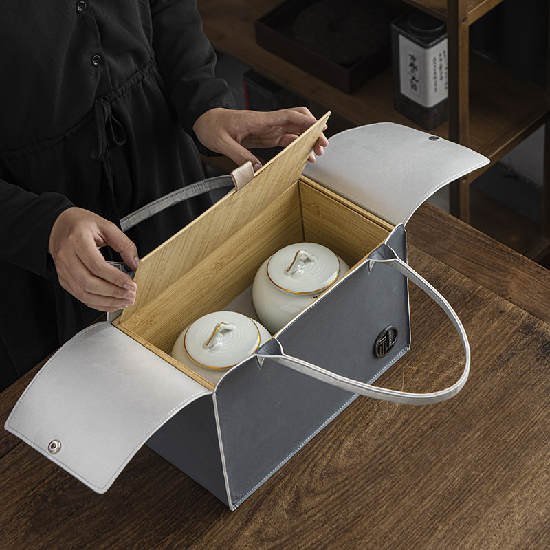 昌朴居茶具收纳包双格收纳小皮包大容量户外出行旅行便携茶器盒子