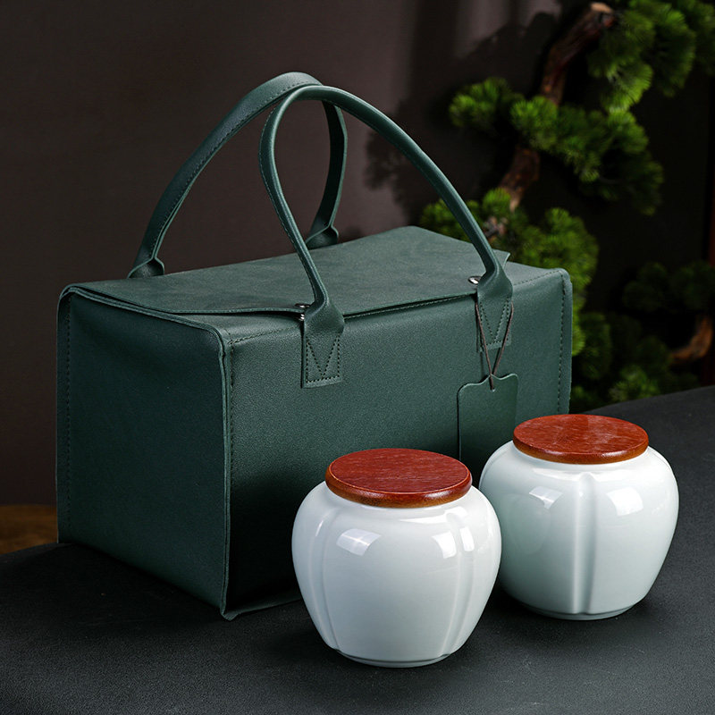 高档皮包茶叶礼盒装空盒白茶绿茶龙井包装盒通用陶瓷茶叶罐半斤装
