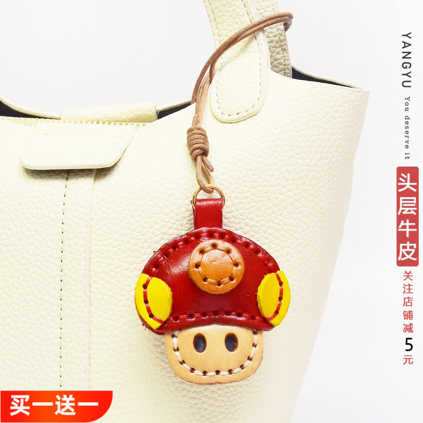 买一送一【蘑菇呀】头层牛皮包挂件真皮钥匙扣挂饰男女包通用高级