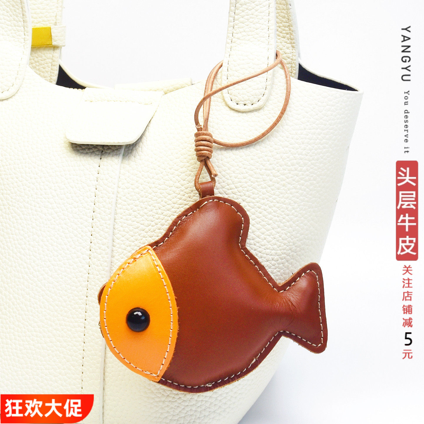 真皮 小鱼儿~北欧手工真皮牛皮包挂件卡通挂饰车钥匙扣创意礼物