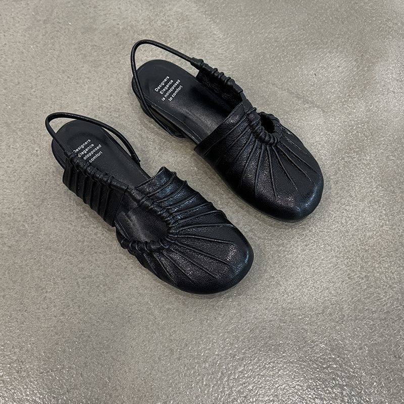 3.5cm设计感~时光荏苒新款真皮包头凉鞋女夏外穿时尚配裙子软底