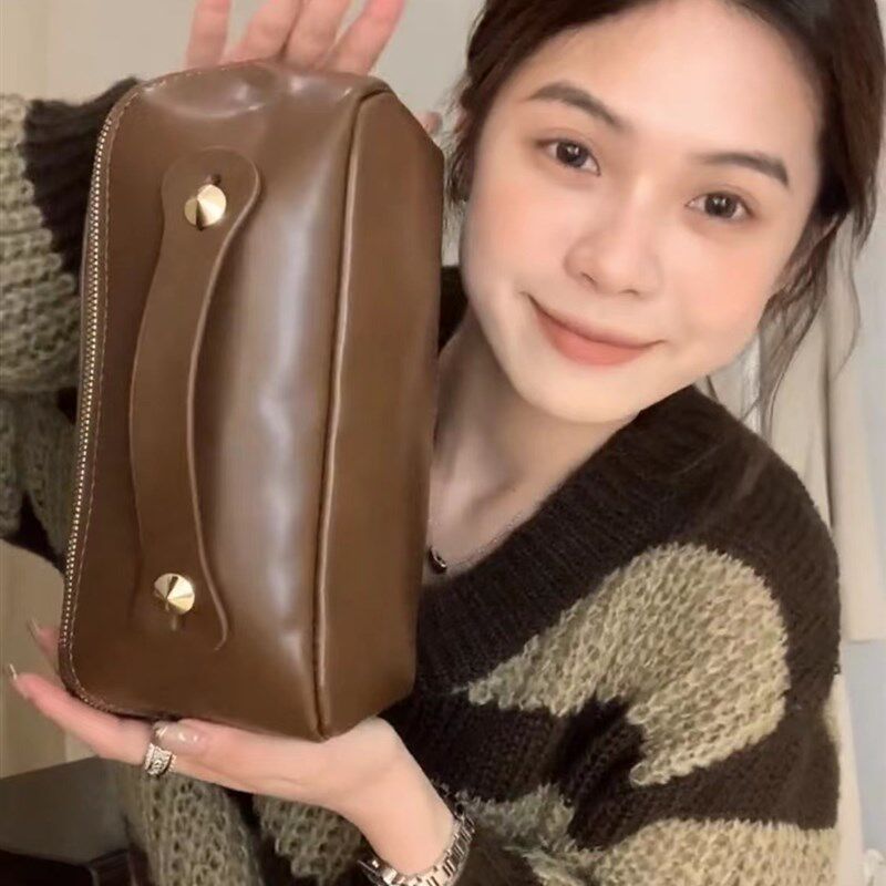 速发HEYOI小众手提皮包大容量收纳袋洗漱包is旅行便携