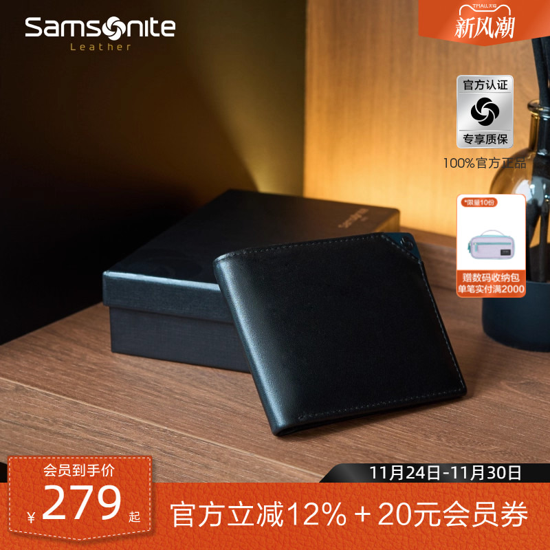 Samsonite新秀丽钱包牛皮钱夹商务皮包短夹驾驶证卡包送礼礼物TK6