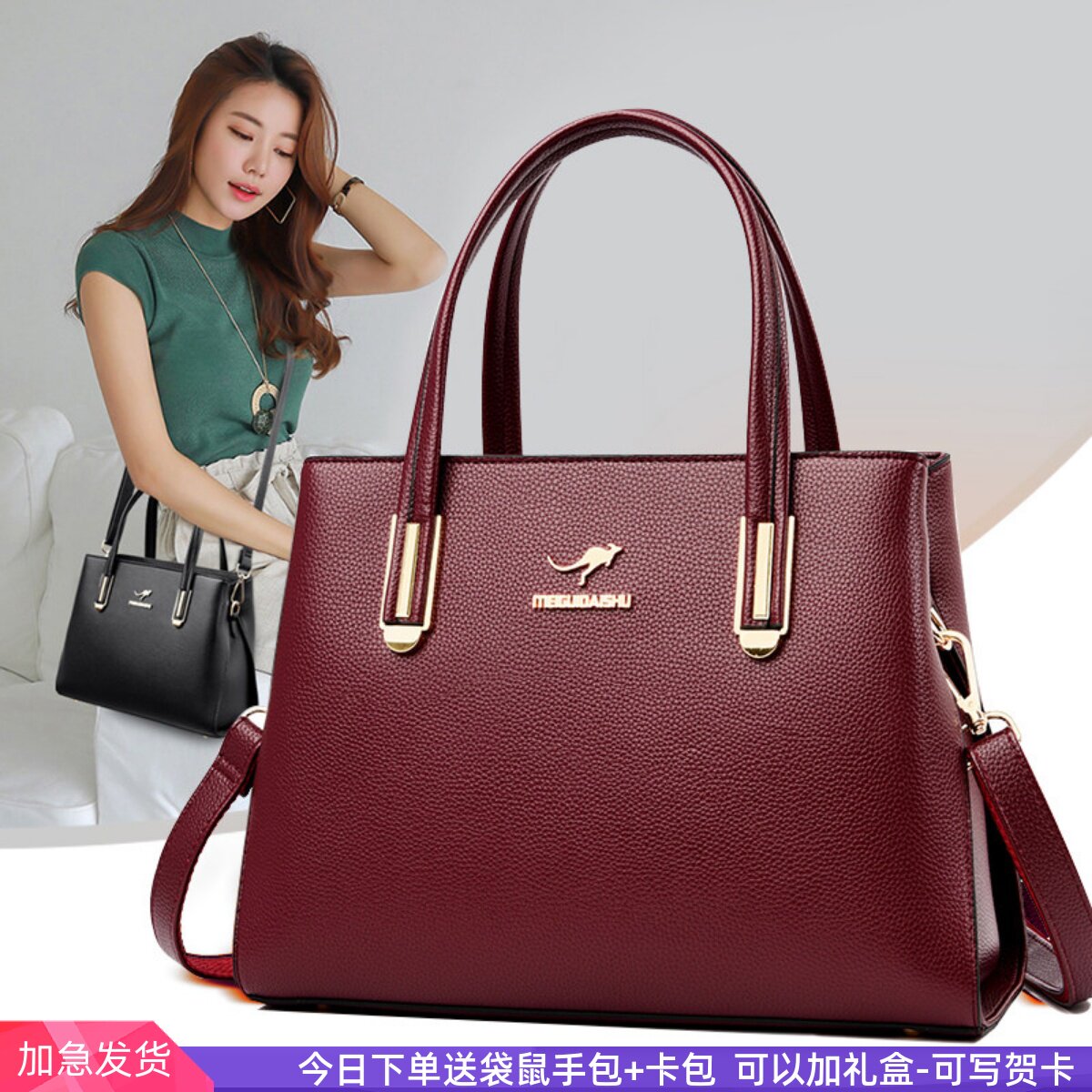 品牌正品袋鼠真皮包包女士手提包2026新款中年妈妈大容量斜挎包
