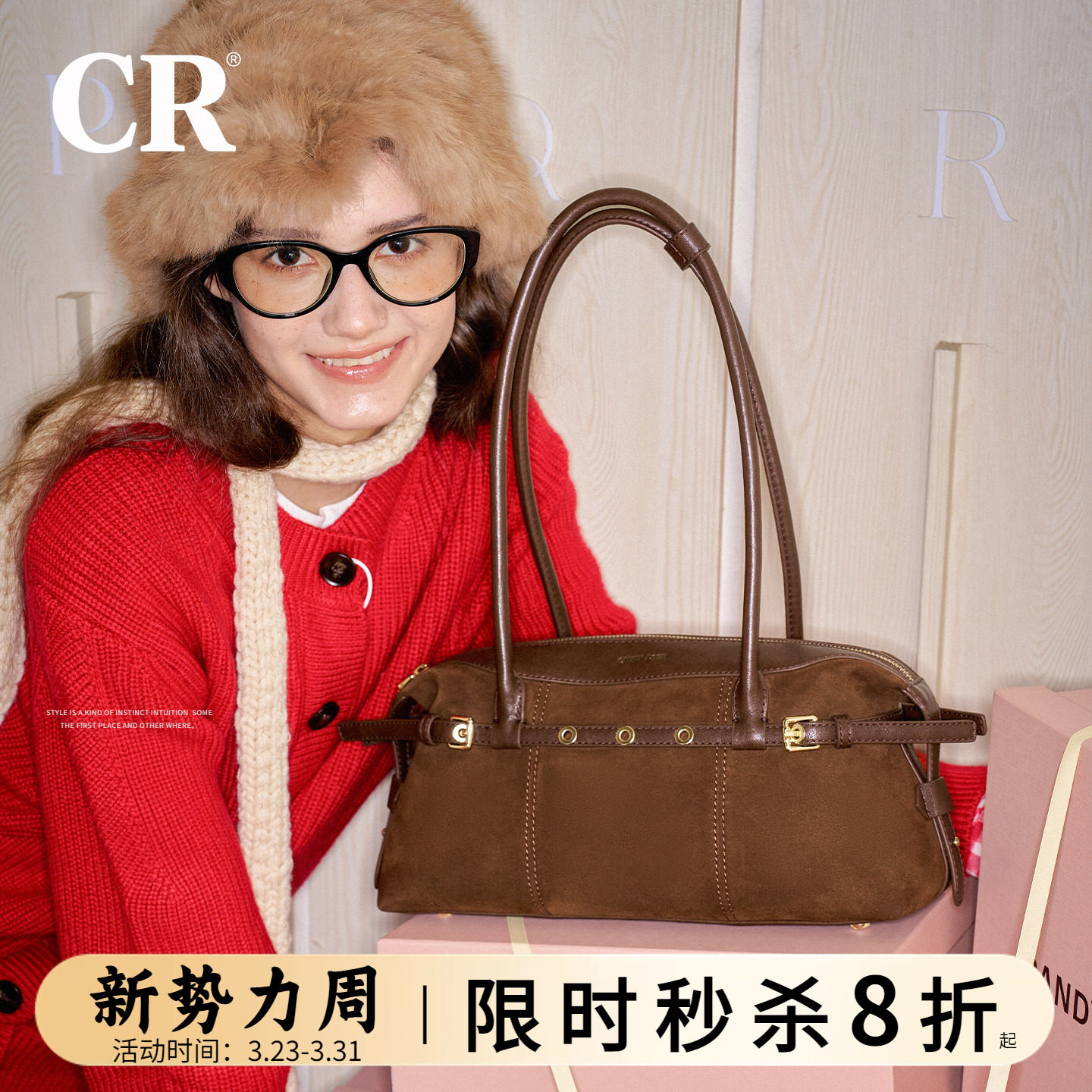 CandyRose头层牛皮包包反绒大容量圈圈包秋冬新款通勤腋下单肩包