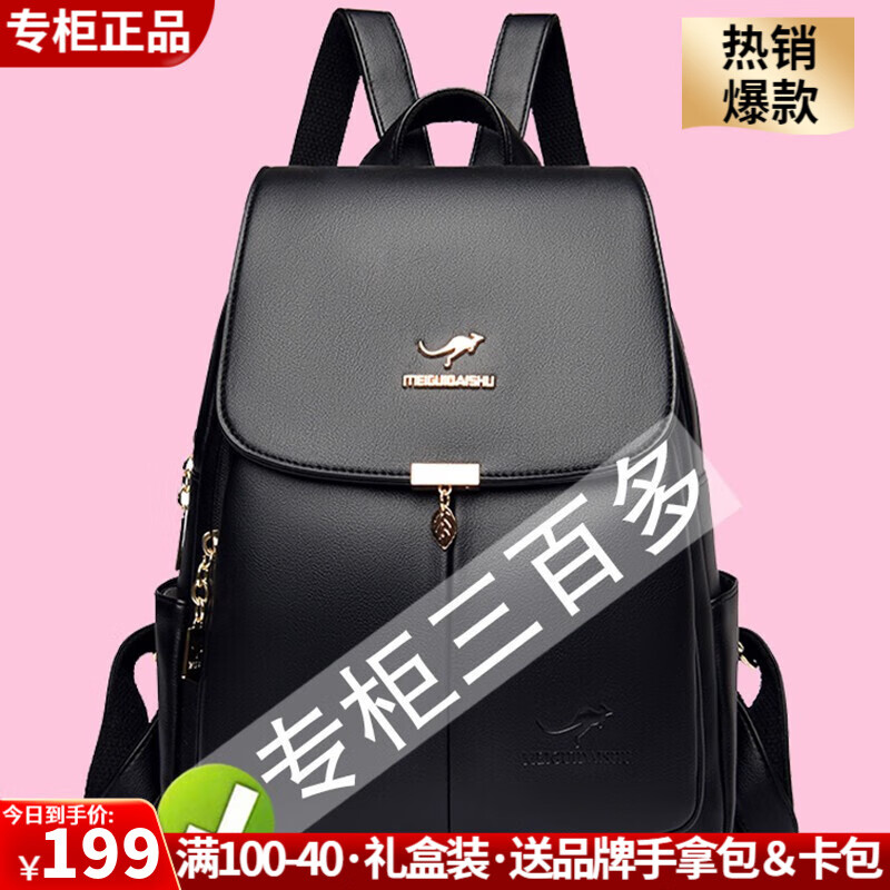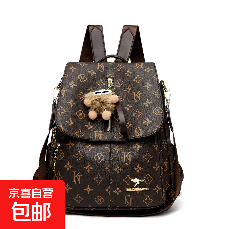 正品袋鼠2025新款皮包双肩包女士妈妈时尚旅游背包软皮休闲大容量