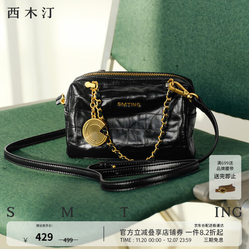 西木汀 可可月光 头层牛皮包包新款链条手提包女斜挎单肩包轻奢 深邃黑