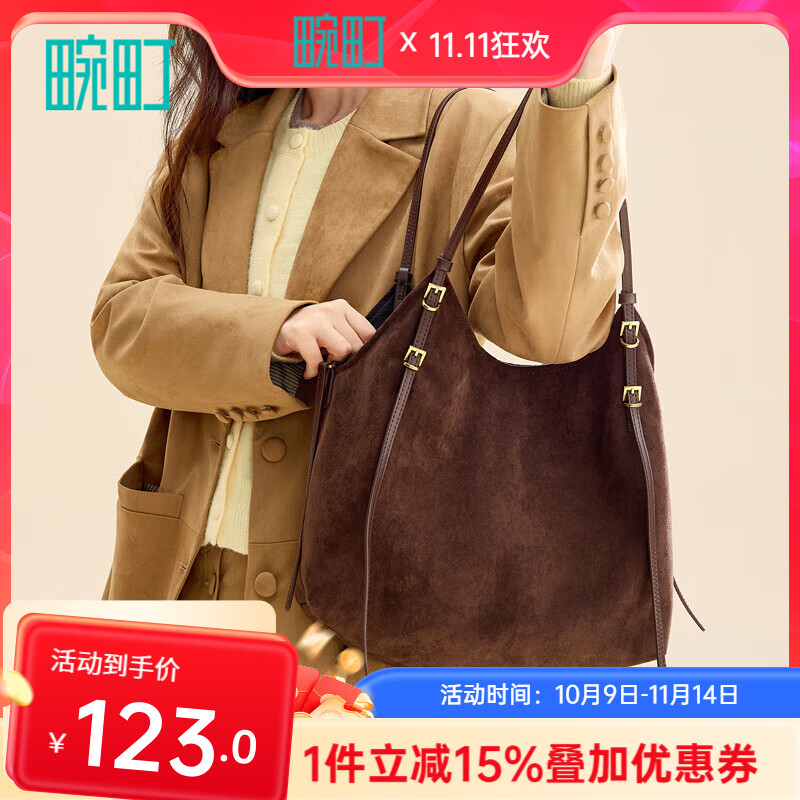 百丽流浪摩卡反绒麂皮包包女hobo大容量斜挎托特饺子包8562ACX5