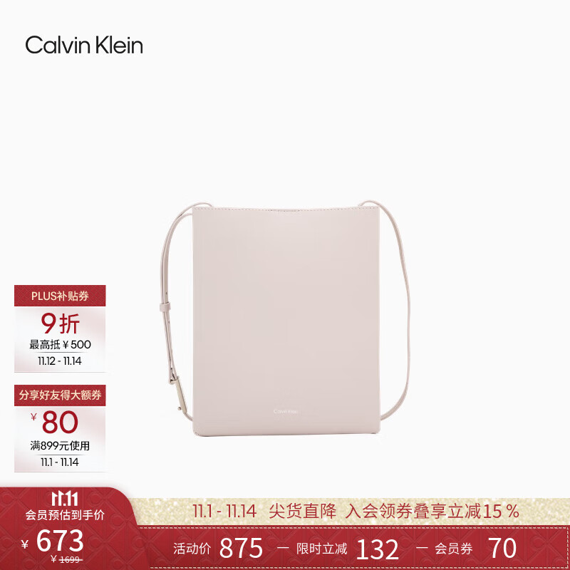 Calvin Klein休闲通勤单肩包礼物真皮牛皮包包纸袋包CK女包斜挎包4F3005G FSS-隐红灰 OS