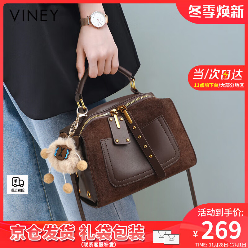 viney牛皮包包女包斜挎包轻奢手提包生日生日礼物送女友老婆 【咖色】实用高级感枕头包 时尚品牌百搭休闲通勤波士顿包