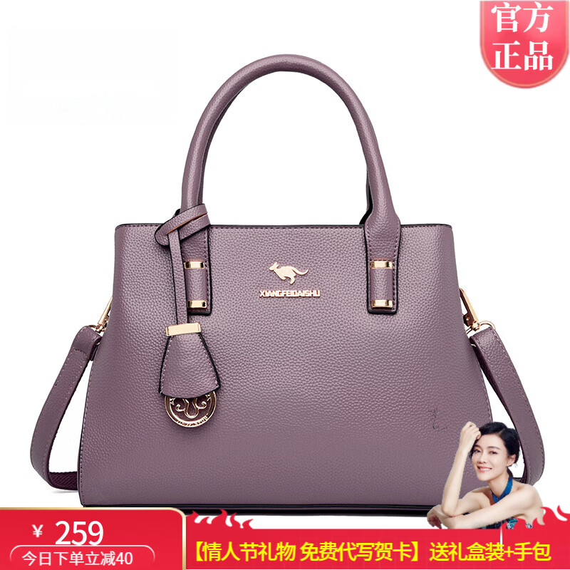 袋鼠卡拉正品包包手提包女大容量2026爆款中年女士妈妈女包百搭斜挎品牌包 紫色【手包+卡包+礼盒装】
