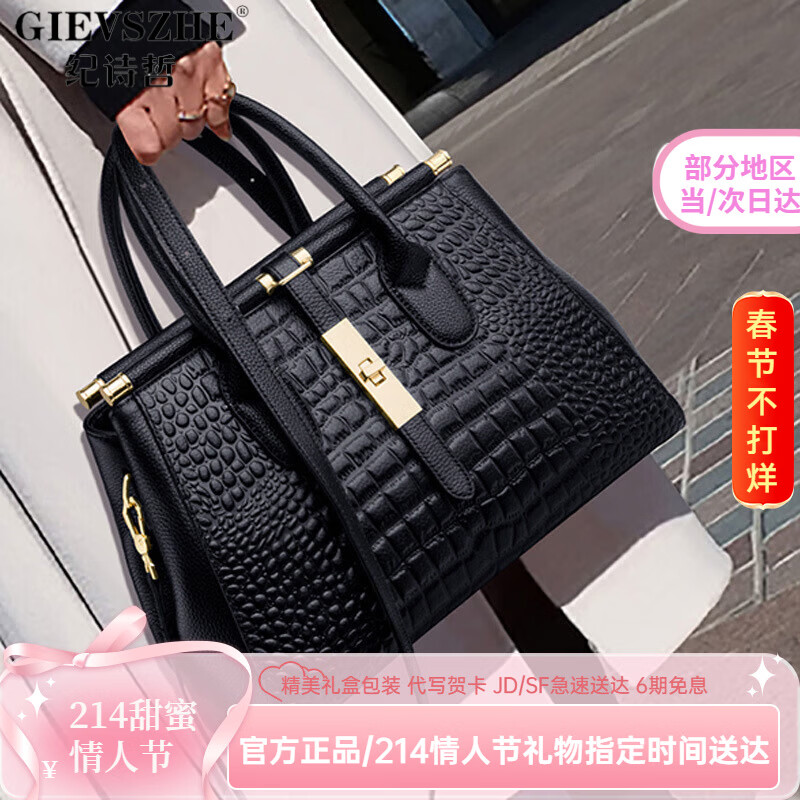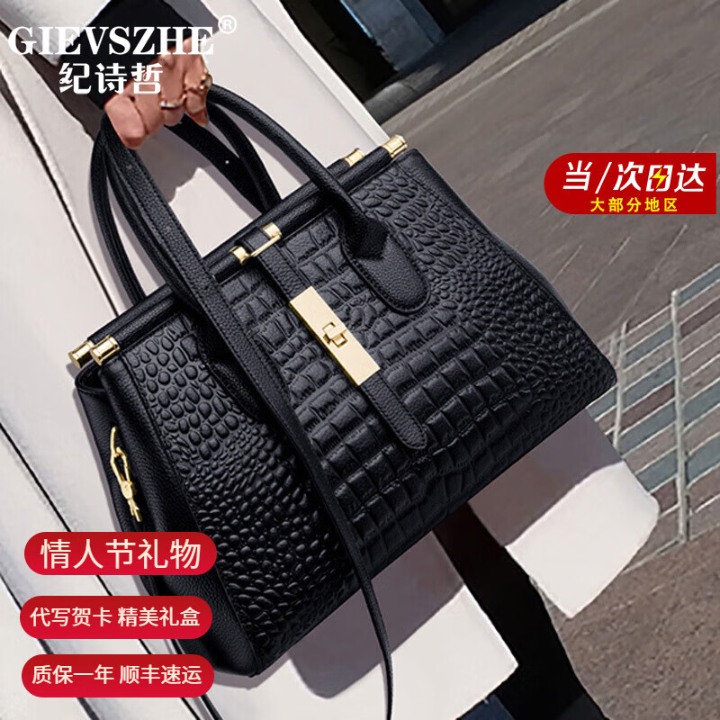 纪诗哲(GIEVSZHE)轻奢头层牛皮包包女2026年中年手提包 生日214情人节礼物送老婆 黑色【头层牛皮】 -【情人节礼物】 礼盒装 -【情人节礼物】