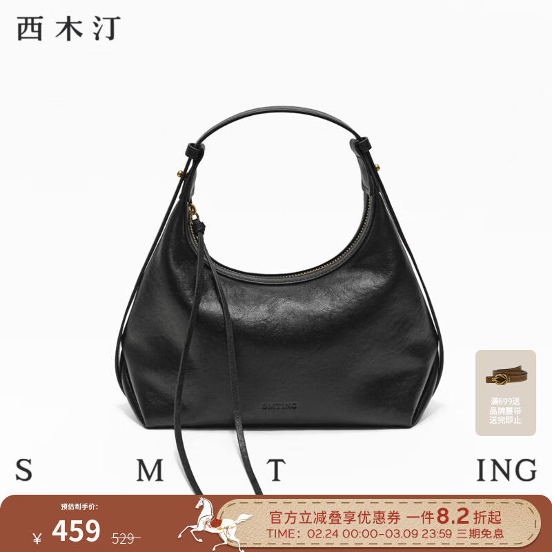 西木汀 圆满可期 头层牛皮包hobo包新款女小个子单肩包包轻奢手提包 深邃黑【头层牛皮】