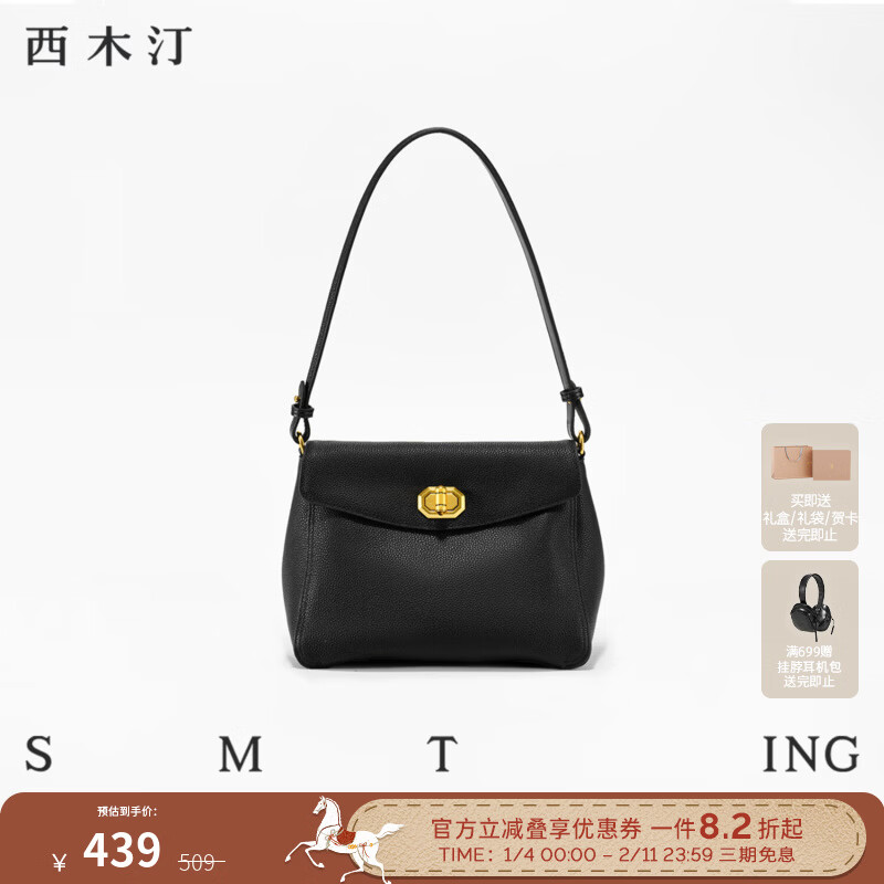 西木汀追寻 头层牛皮包包白色腋下包女新款单肩包设计感 女友礼物 深邃黑 无规格