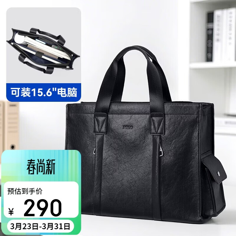 POLO公文包男士商务手提包男15.6英寸电脑包男通勤单肩包耐磨斜挎包男