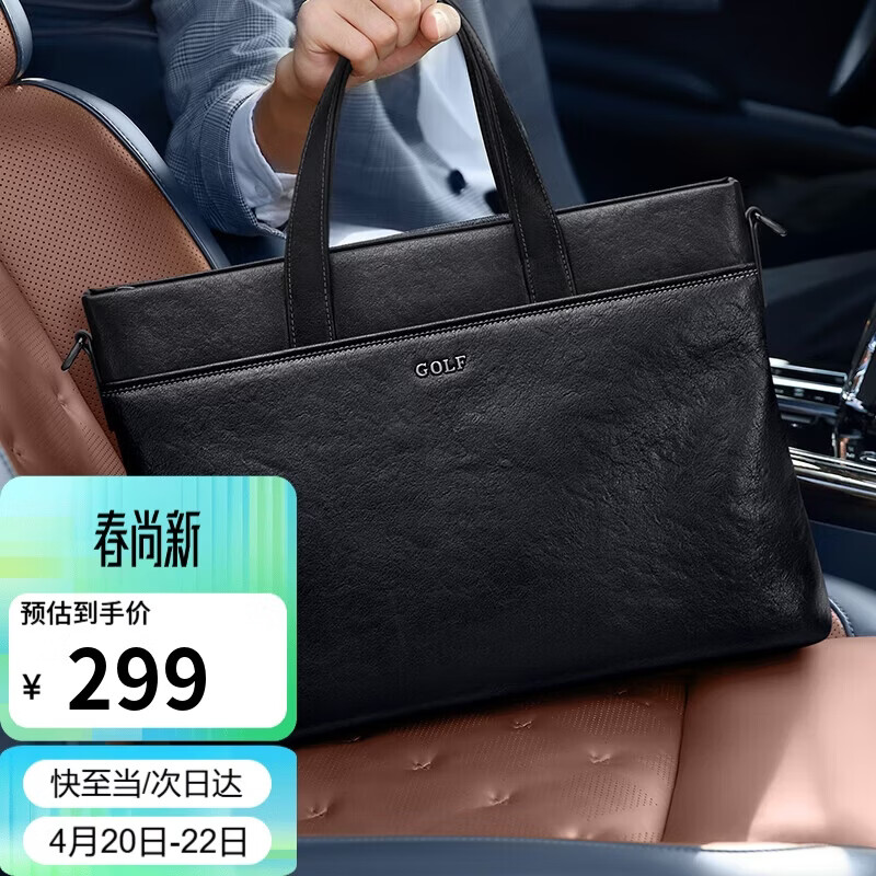 高尔夫(GOLF)商务公文包男士手提包软皮14/16英寸电脑包单肩斜挎包办公文件包