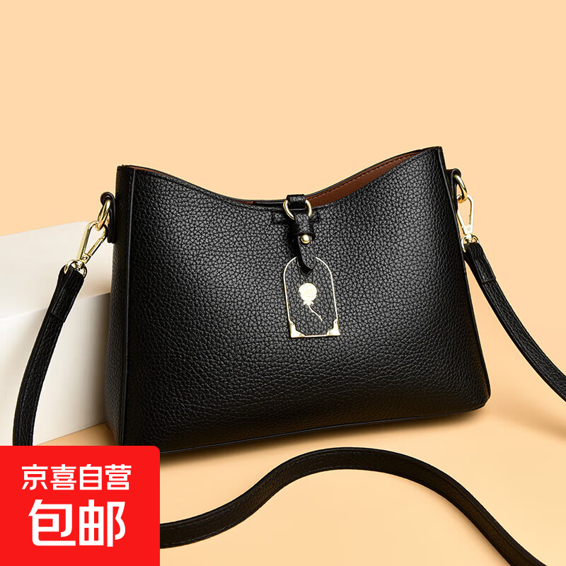 真皮包包2025新款女包中年妈妈款牛皮女士单肩斜挎包软皮包大容量 黑色+手包