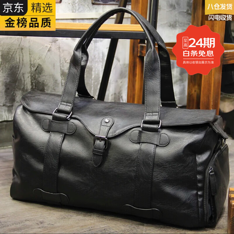 EKK德国进口品牌男士真皮包干湿分离男健身包大容量短途行李包旅行 黑色