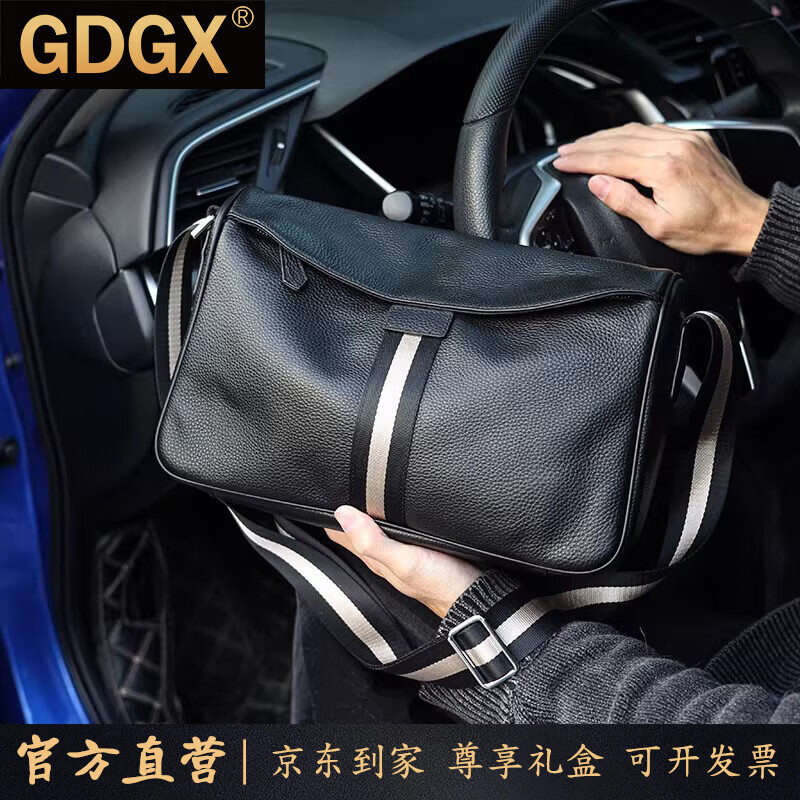 GDGX真皮单肩斜挎包男士休闲包包头层牛皮包大容量商务通勤背包男包 黑色 31*10*20cm