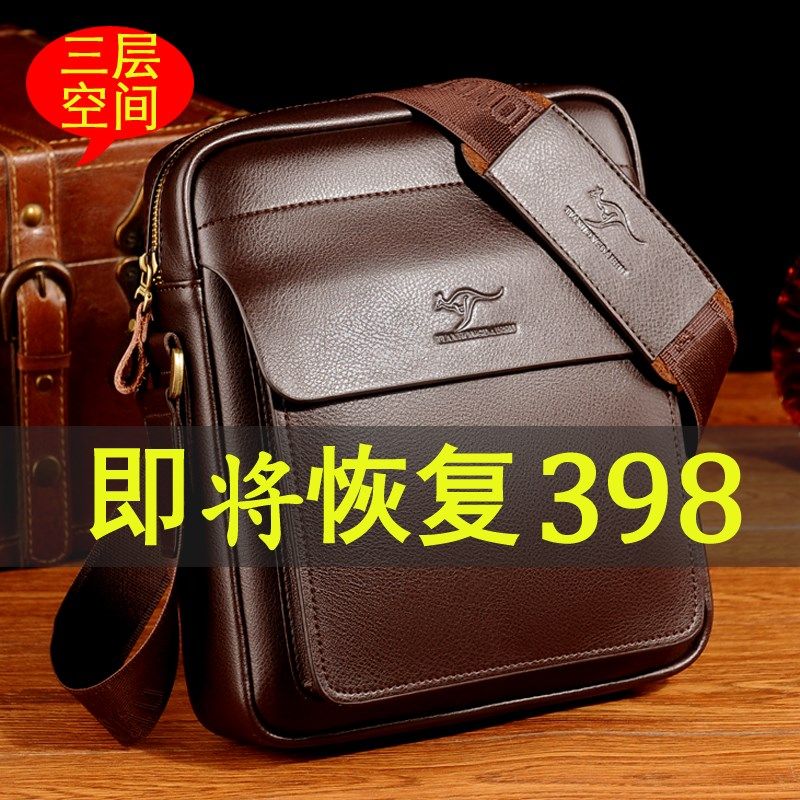 天弘袋鼠男包单肩包小挂包男士背包男斜跨牛皮包商务休闲包包