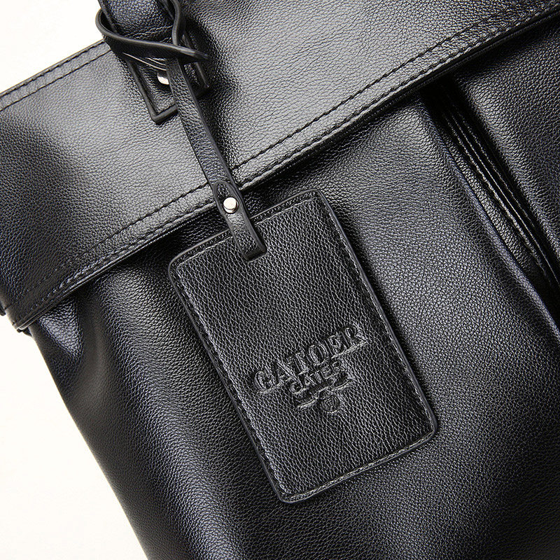 【自营】JANE KLAIN黑色皮质双肩包大容量旅行包男包背包皮包书包