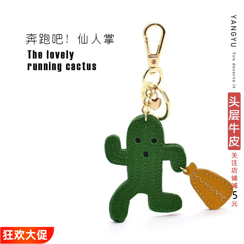 真皮奔跑吧仙人掌~头层牛皮包挂件北欧ins车钥匙扣手账本书签挂饰