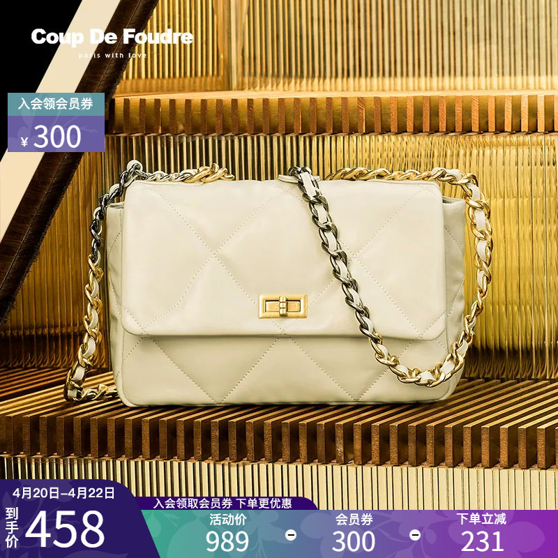 CDF轻奢时尚夏季新款真皮包包女包单肩包斜跨包锁扣链条包小方包