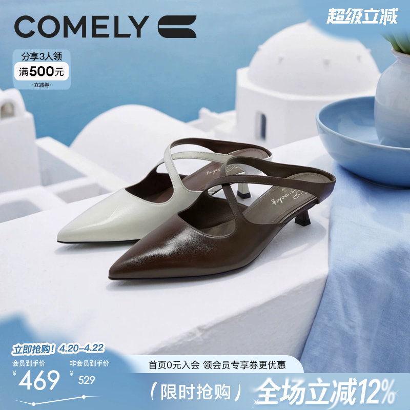 康莉细跟穆勒鞋26年夏新款优雅牛皮真皮包头凉拖鞋商场同款62113D