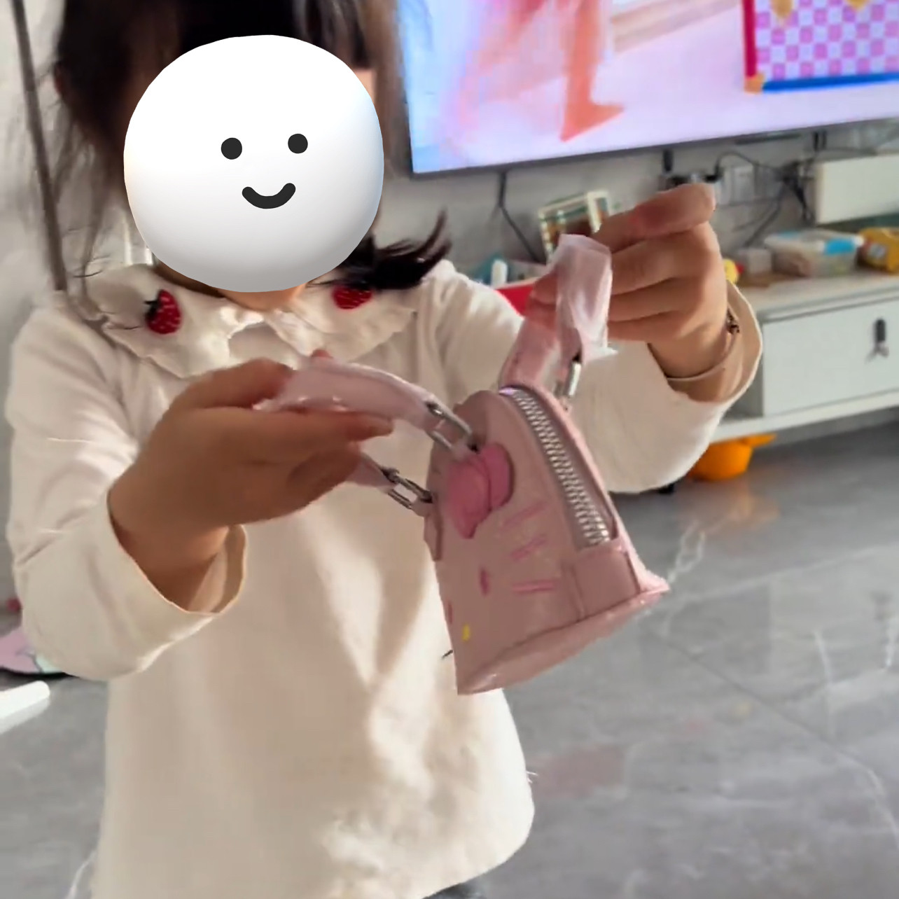 粉色小皮包可爱猫咪图案mini儿童手提包小女生少女心斜挎包